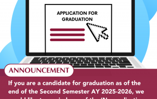 If you are a candidate for graduation as of the end of the First Semester AY 2025-2026, we would like to remind you of the ‘No application, No graduation’ Read more