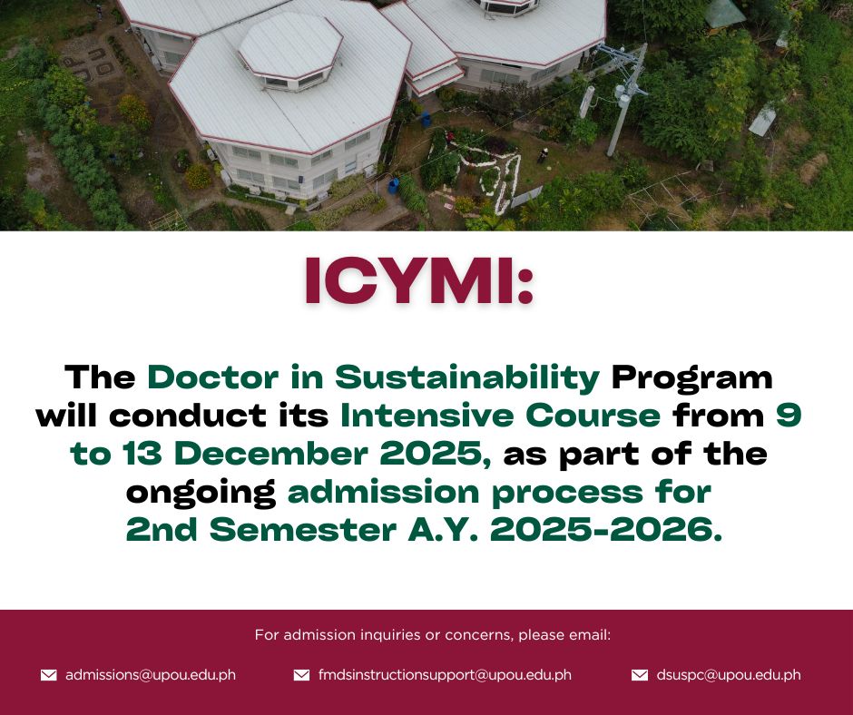 The Doctor in Sustainability Program will conduct its Intensive Course from 9 to 13 December 2025, as part of the ongoing admission process for