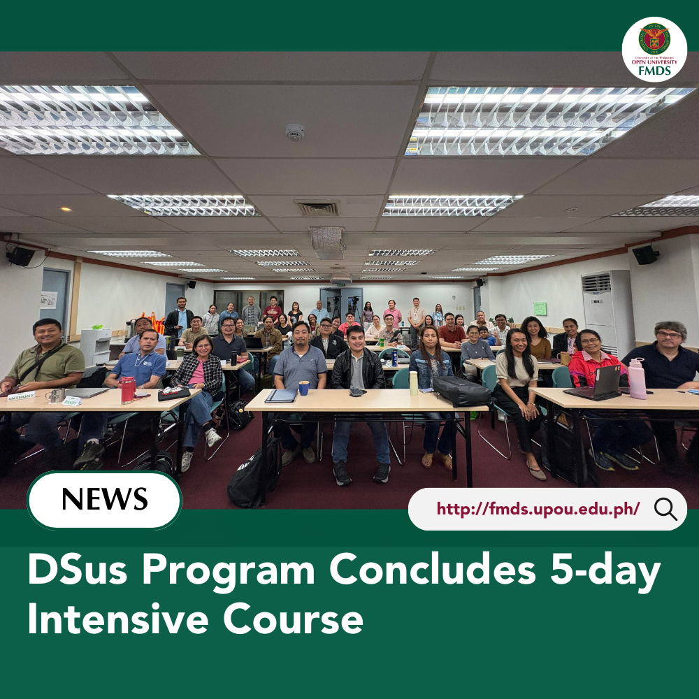 superadmin2026-01-09T09:35:13+08:00The Doctor in Sustainability (DSus) Program of the University of the Philippines Open University (UPOU), under the Faculty of Management and Development Studies (FMDS), successfully concluded its five-day Intensive Course from 09 to 13 December 2025 at UPOU Read more