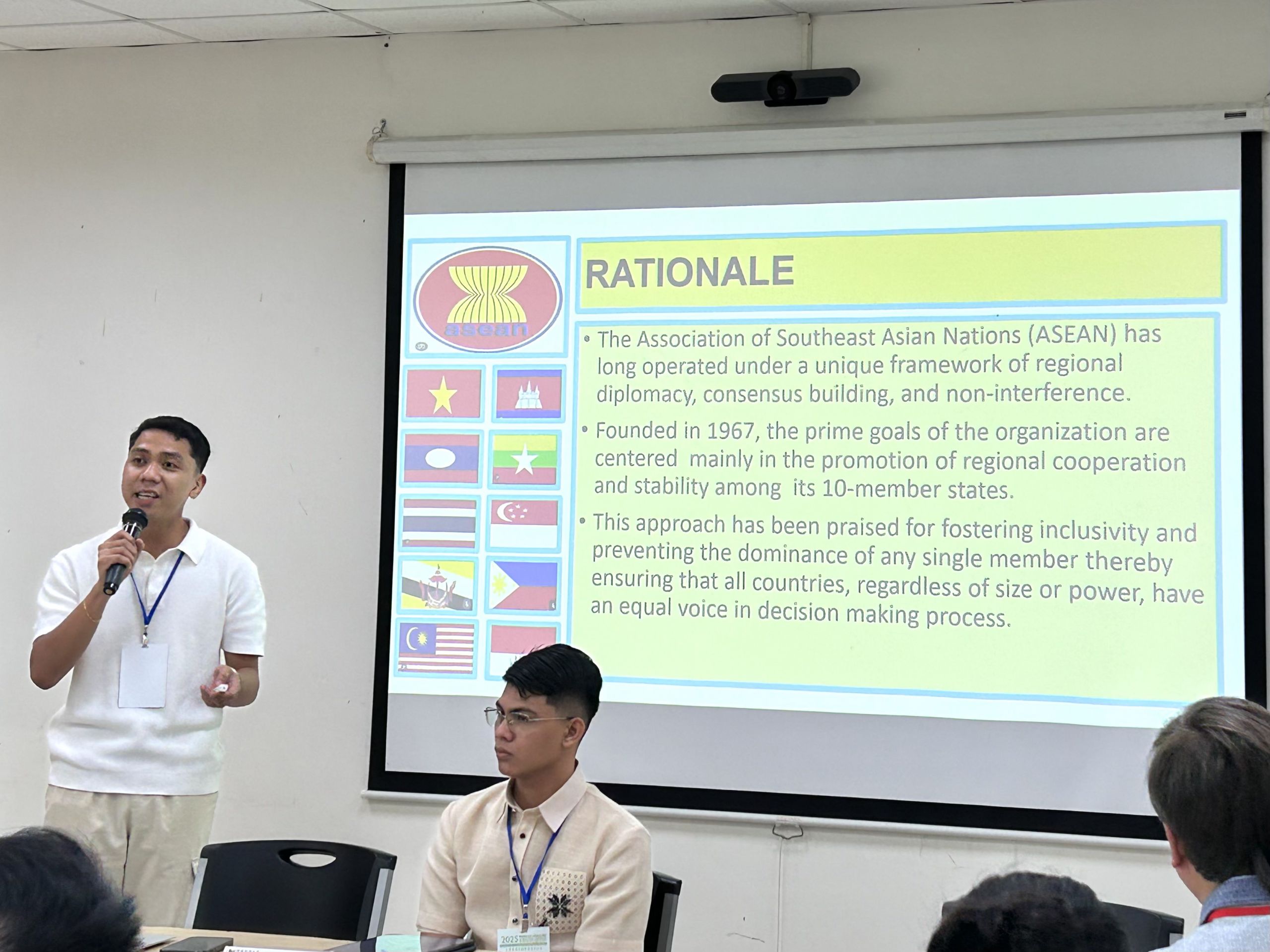 Presenting the results of his thesis titled “The Chairman’s Statements as Political Discourse: An Examination of ASEAN’s Pragmatism in the South China Sea Tensions,” Mr. Castaño examined how ASEAN Chairman’s Statements shape regional identity, guide institutional direction, and reflect the organization’s pragmatic approach to the South China Sea issue.