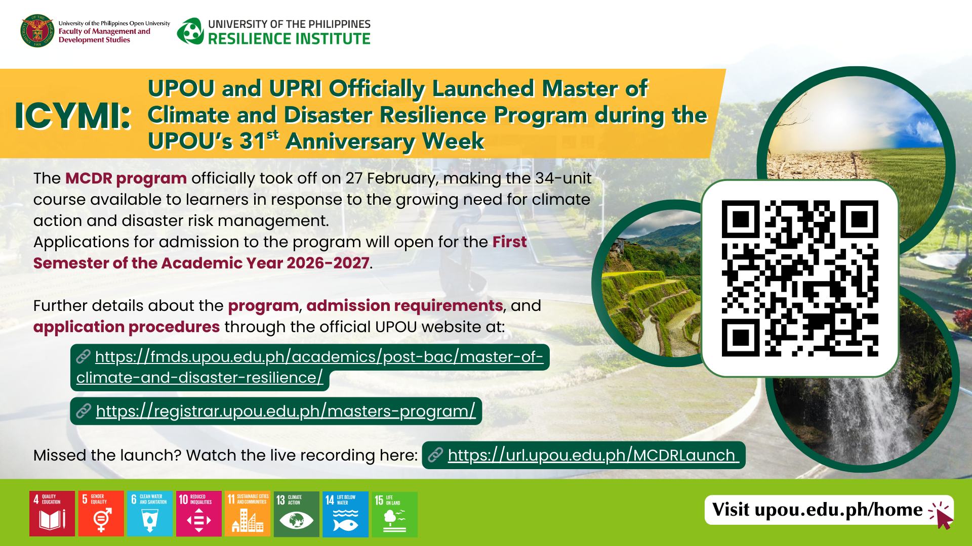 🔗https://fmds.upou.edu.ph/academics/post-bac/master-of-climate-and-disaster-resilience/