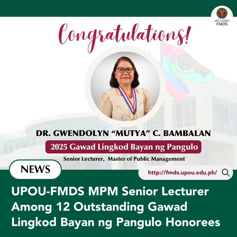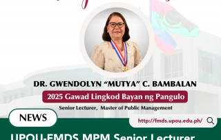 The Faculty of Management and Development Studies (FMDS) Master of Public Management (MPM) Program congratulates Dr. Gwendolyn “Mutya” C. Bambalan, DPA, CESO III, Senior Lecturer of Voluntary Sector Read more