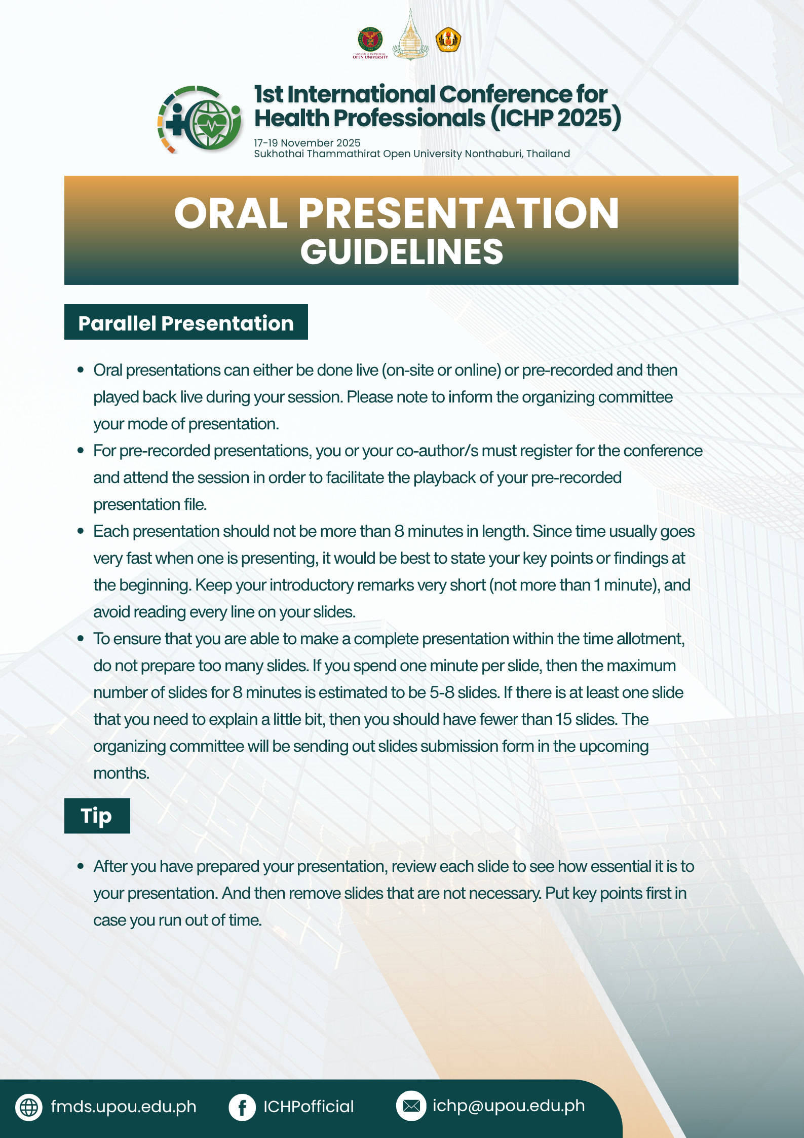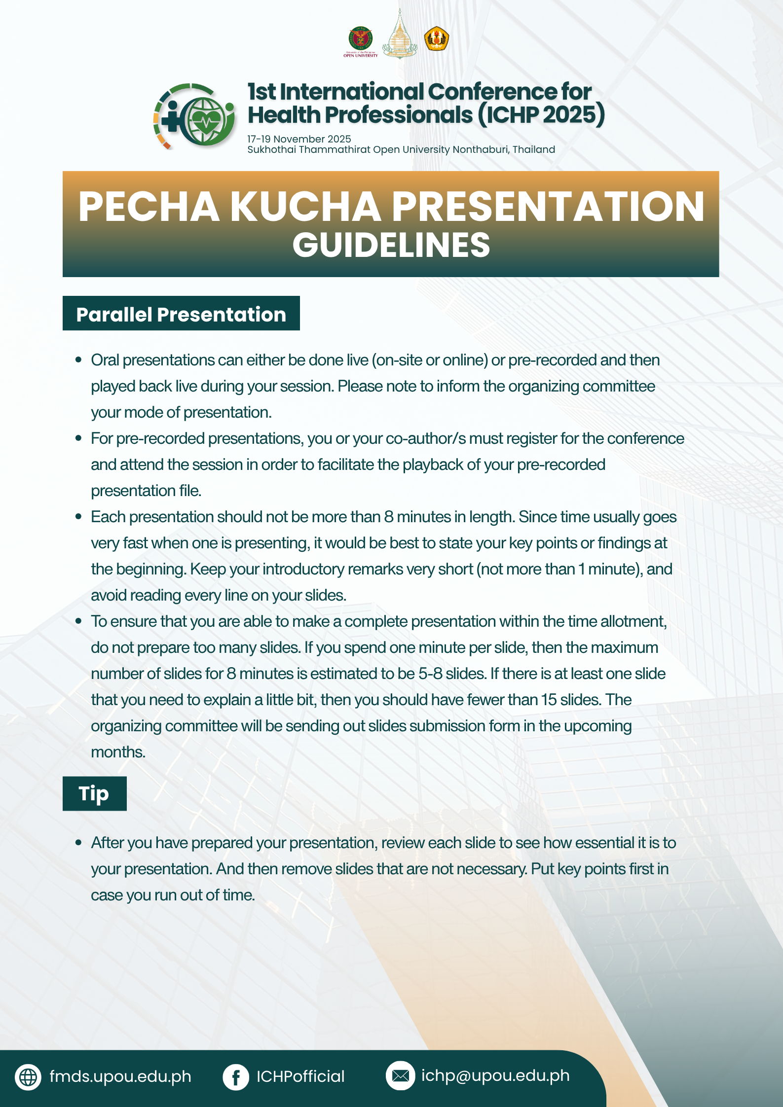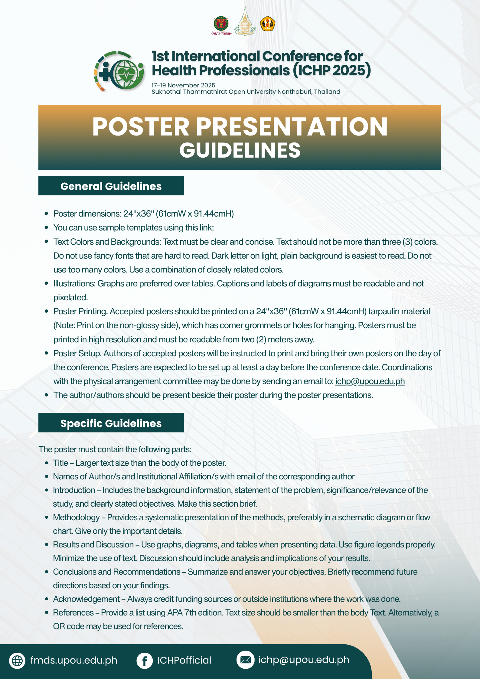 Don’t miss the opportunity to showcase your work and join meaningful conversations that shape the future of health professions. We look forward to your contribution at ICHP 2025 in Thailand!